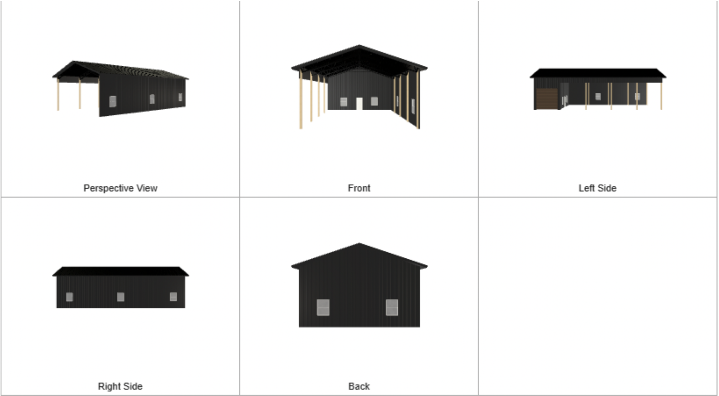 Mockup of the workshop design from the builder. I wanted the charcoal gray to blend the building in with the forest.