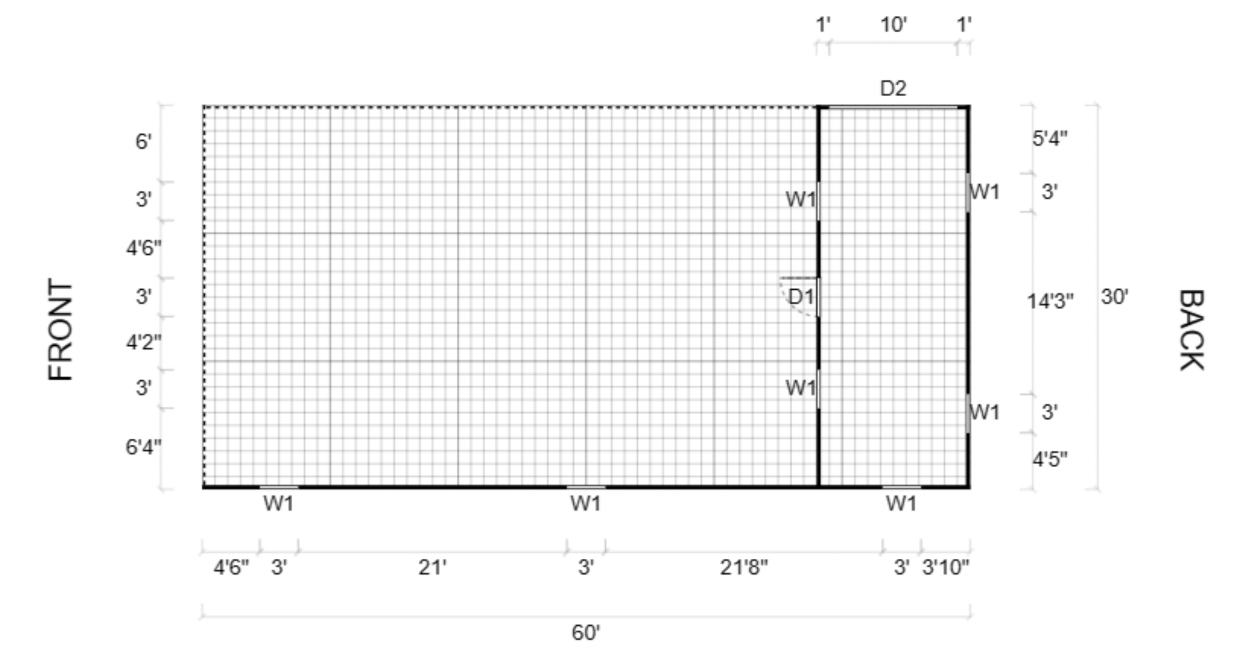 Floor plan for my workshop features a large covered area and smaller enclosed area. It features two stories.